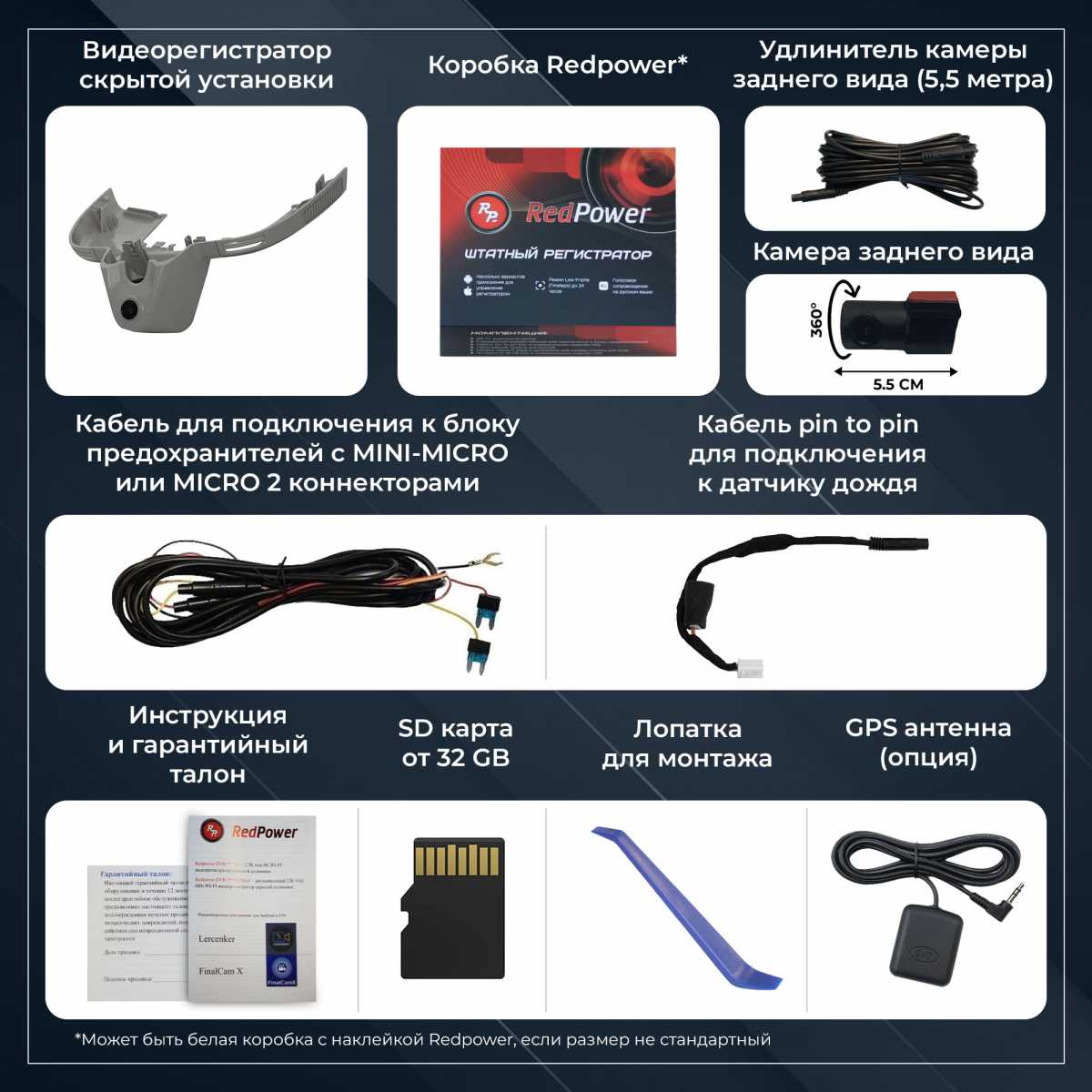 Wi-Fi видеорегистратор Redpower предназначен для скрытной установки в любой автомобиль. Видеорегистратор не имеет своего экрана, но легко соединяется со современными смартфонами на платформах Android и IOS (несколько вариантов приложений). C экрана смартфона Вы можете управлять настройками видеорегистратора, скачивать и просматривать видео на SD карте.